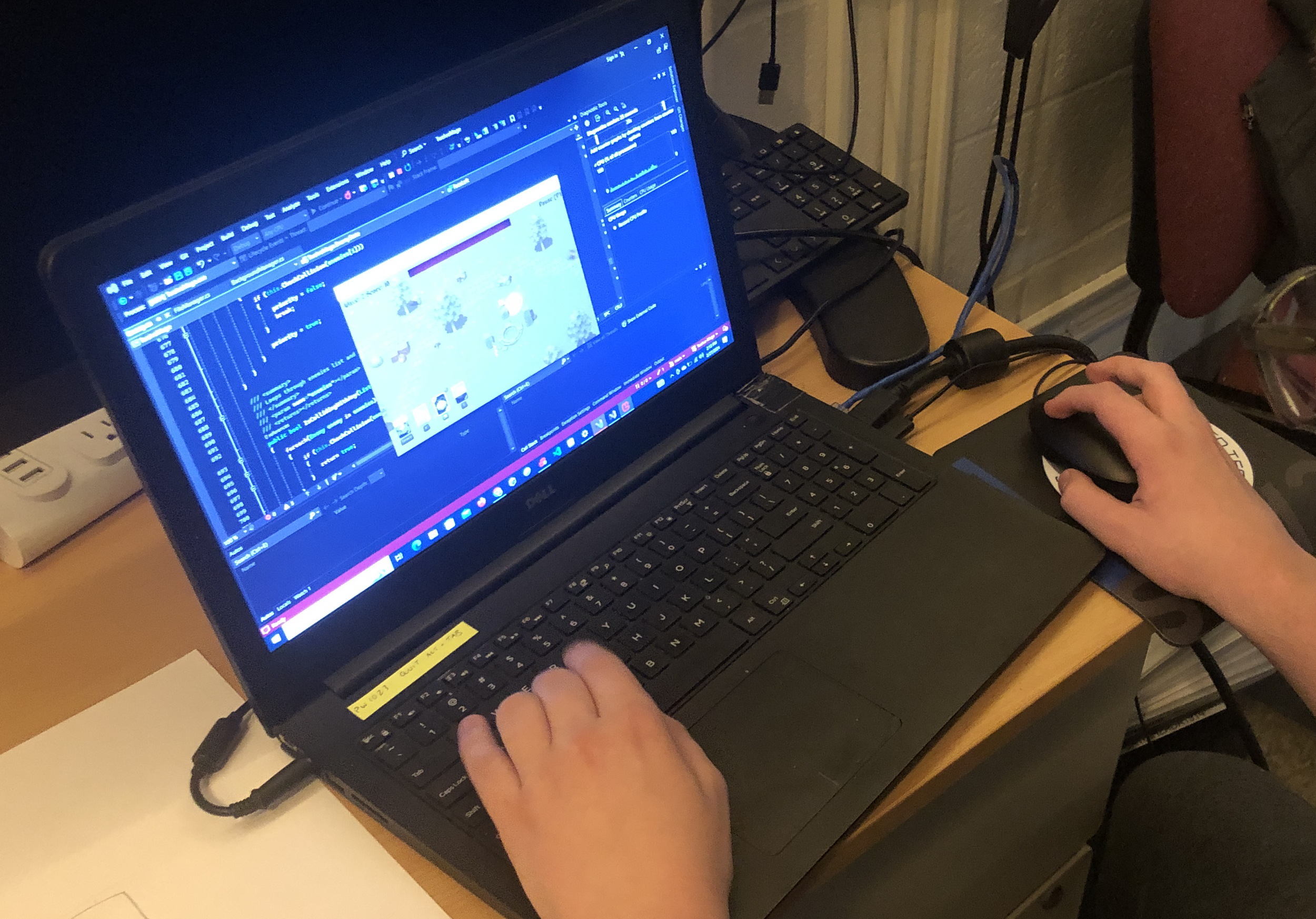 Also during this busy week, on Tuesday we had a guest speaker, Ben Fawley, a sophomore at Rochester Institute of Technology (RIT.edu) review his experience with my students on what it is like to attend one of the top 3 Gaming programs on the East coast. He showcased his game which he and his classmates created in Visual Studio using only code and provided sprites (with no help being provided by a visual interface like Unity). Very impressive work!